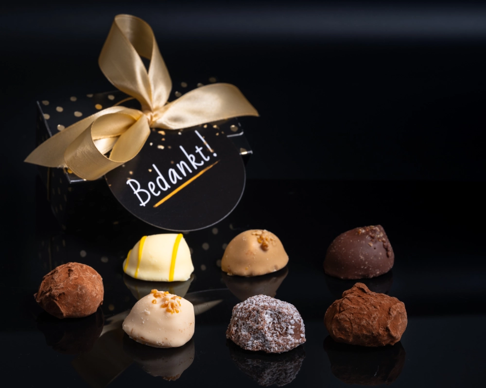 In het kleine geschenk ontvang je 7 overheerlijke slagroomtruffels, van verschillende smaken. Bij het grote geschenk zijn dit er 14.