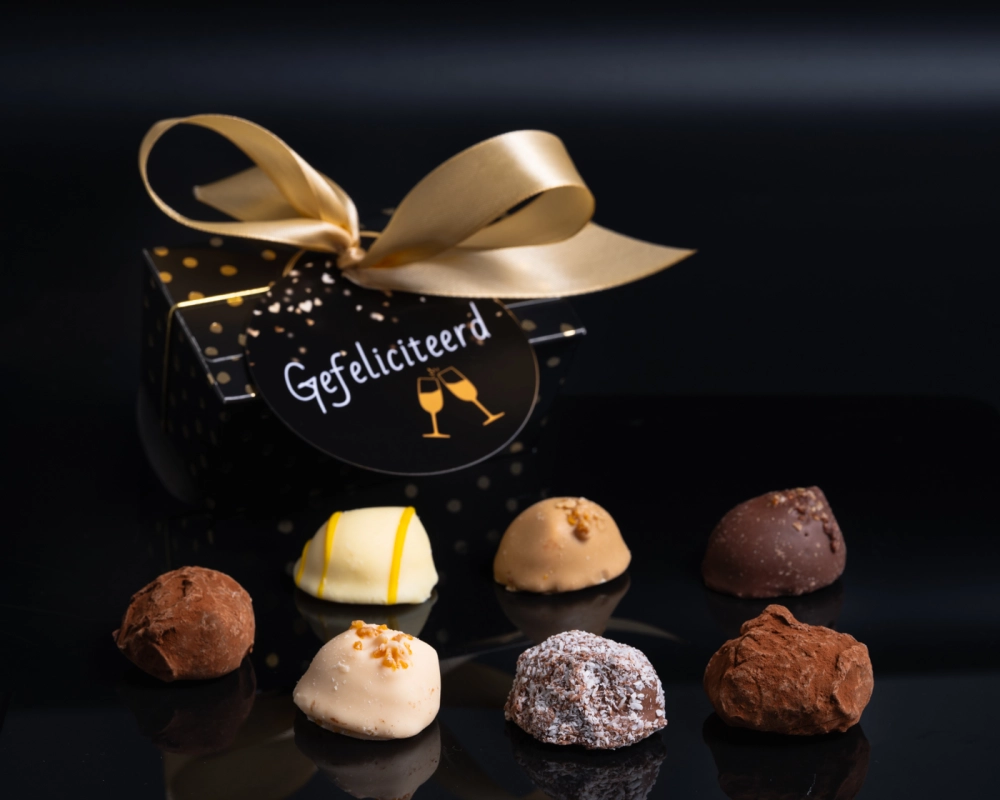 Iemand feliciteren met zijn/ haar nieuwe woning, een trouwdag óf een andere speciale gelegeneheid? Zeg het met truffels! Wij hebben een leuk geschenk samengesteld, zodat jij iemand op een speciale manier kunt feliciteren!