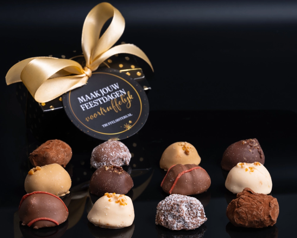 Met dit leuke cadeaupakket ontvang je 2 x de originele slagroomtruffel, 2x caramel zeezout, 2x kokos, 2x mokka hazelnoot, 2 x crème brûlée en 2 x pumpkin spice. Een pakketje van in totaal 12 ambachtelijke truffels én een gratis kerstkaartje van de TruffelSisters.
