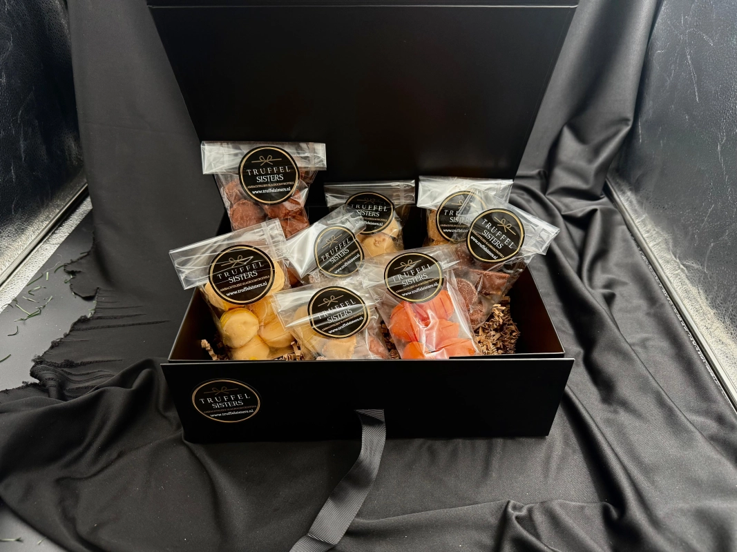 Daarom hebben we speciaal voor dit feestje een jubileum box samengesteld. 5 jaar TruffelSisters, 50 slagroomtruffels!