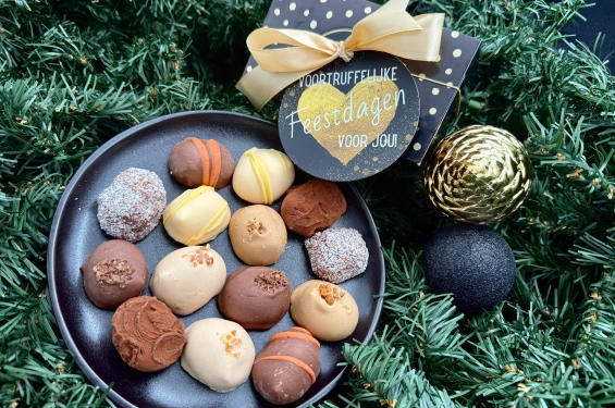 Originele Slagroomtruffel, Caramel Zeezout, Limmencello, Créme Brûlée, Kokos, Mokka Hazelnoot, Pumpkin Spice.